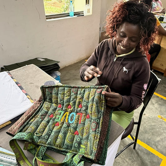 Kanga Tote with Beaded Love - Blueberry Bloom