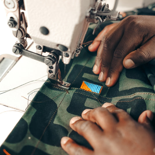 Large Convertible Pouch - Safari Kuba with Red Beaded Heart
