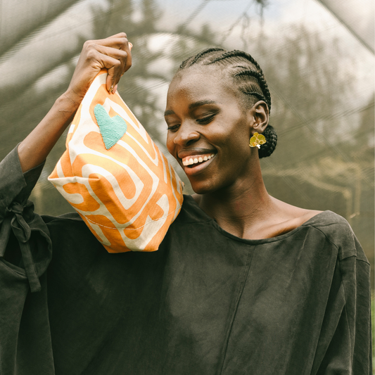 XL Convertible Pouch – Savanna Citrus Kuba with Aqua Beaded Heart