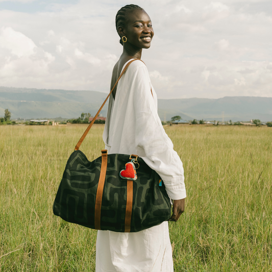 Carryall Bag - Safari Kuba with Red Beaded Heart