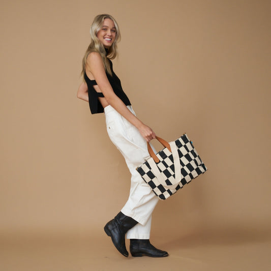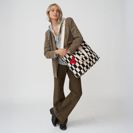 Go To Tote - Mocha Kuba with Red Beaded Heart