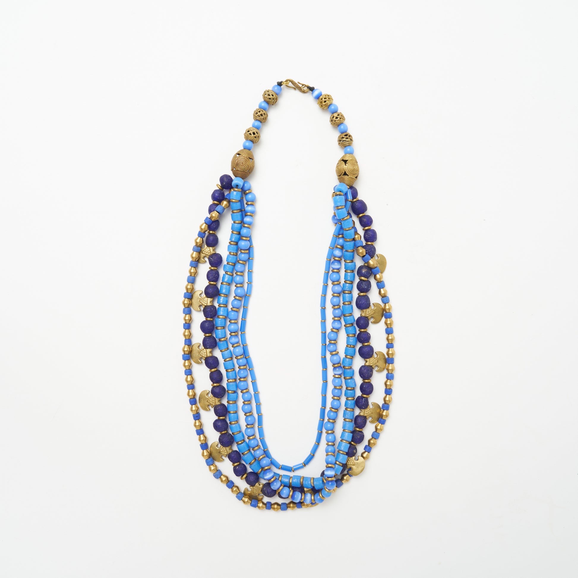 Make a statement with this handmade necklace that beautifully showcases traditional African beads, thoughtfully sourced from both West and East Africa. This exquisite piece is further enhanced by stylish brass accents that add a contemporary flair to its rich cultural heritage.