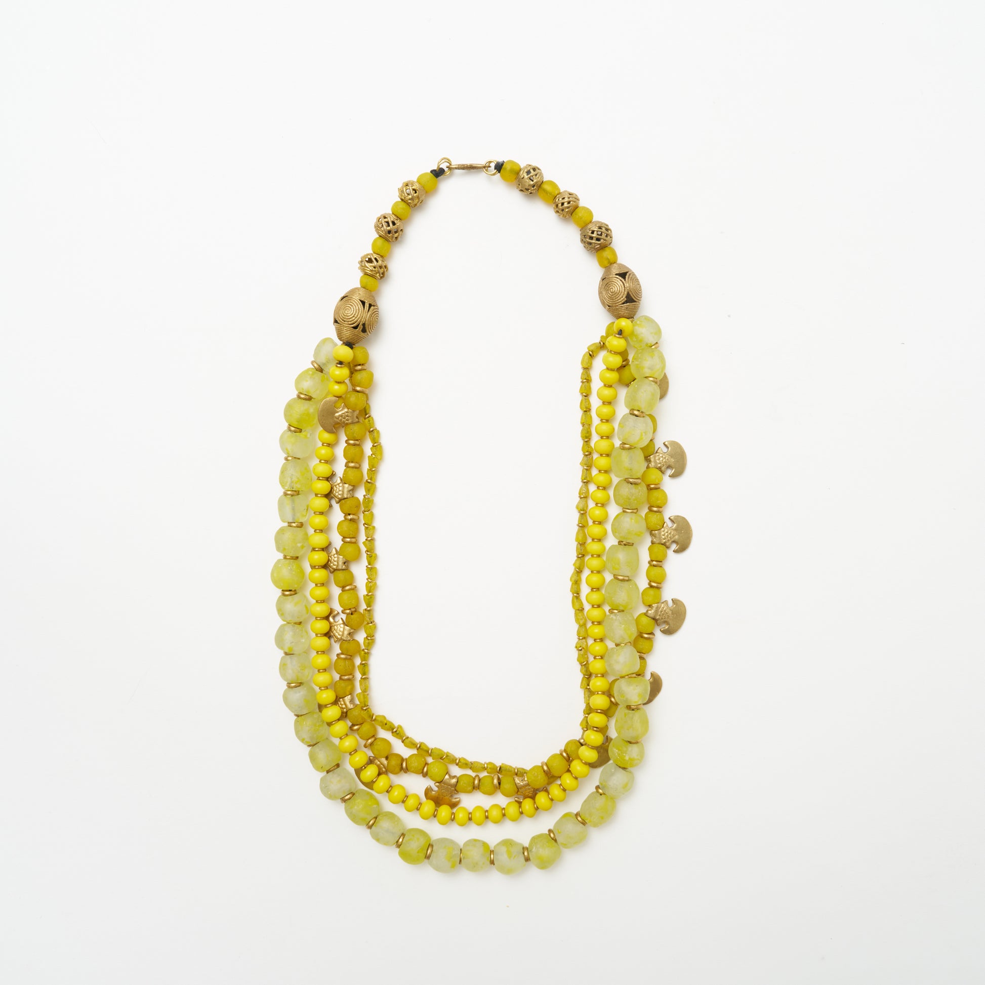African Multi Bead Waterfall Necklace - Yellow