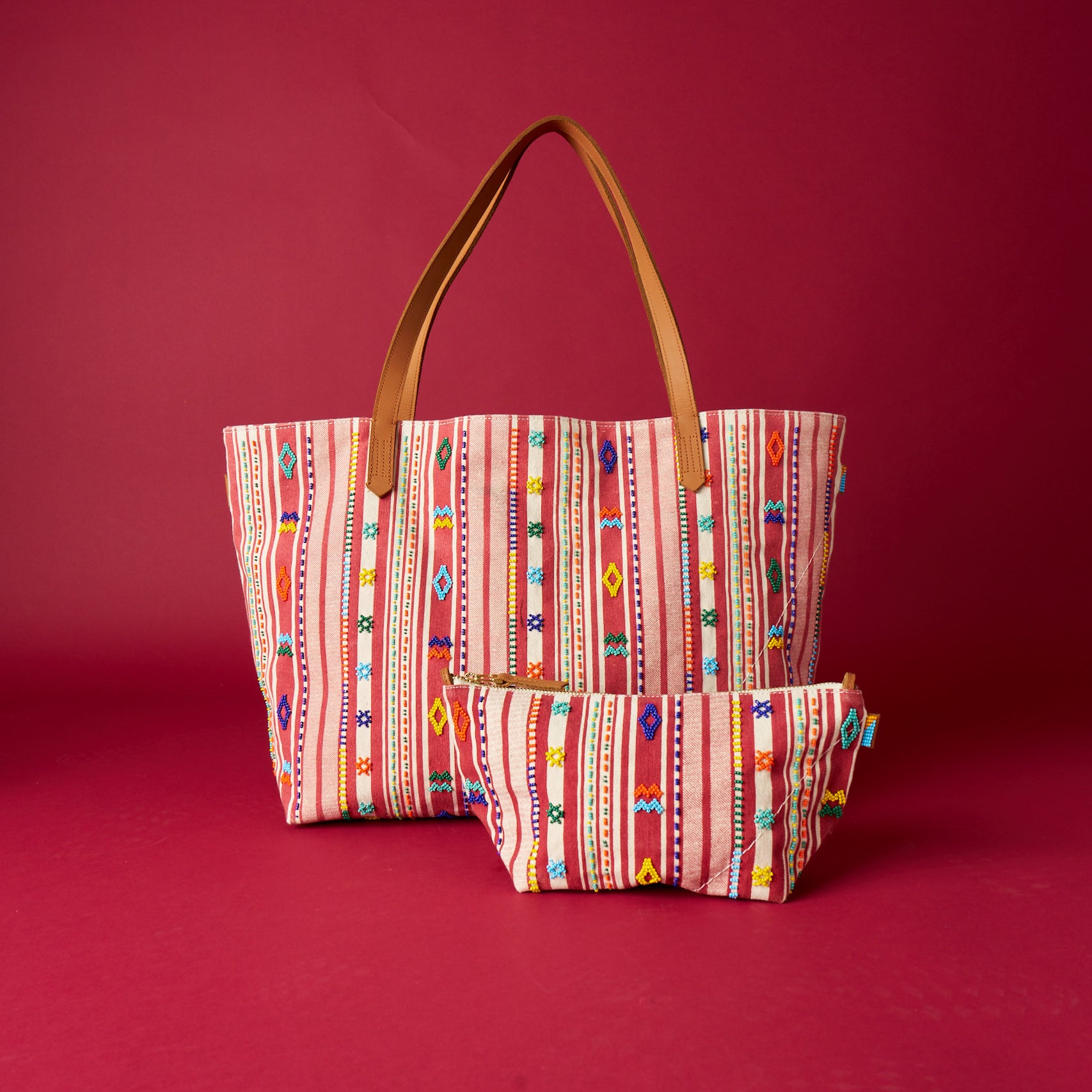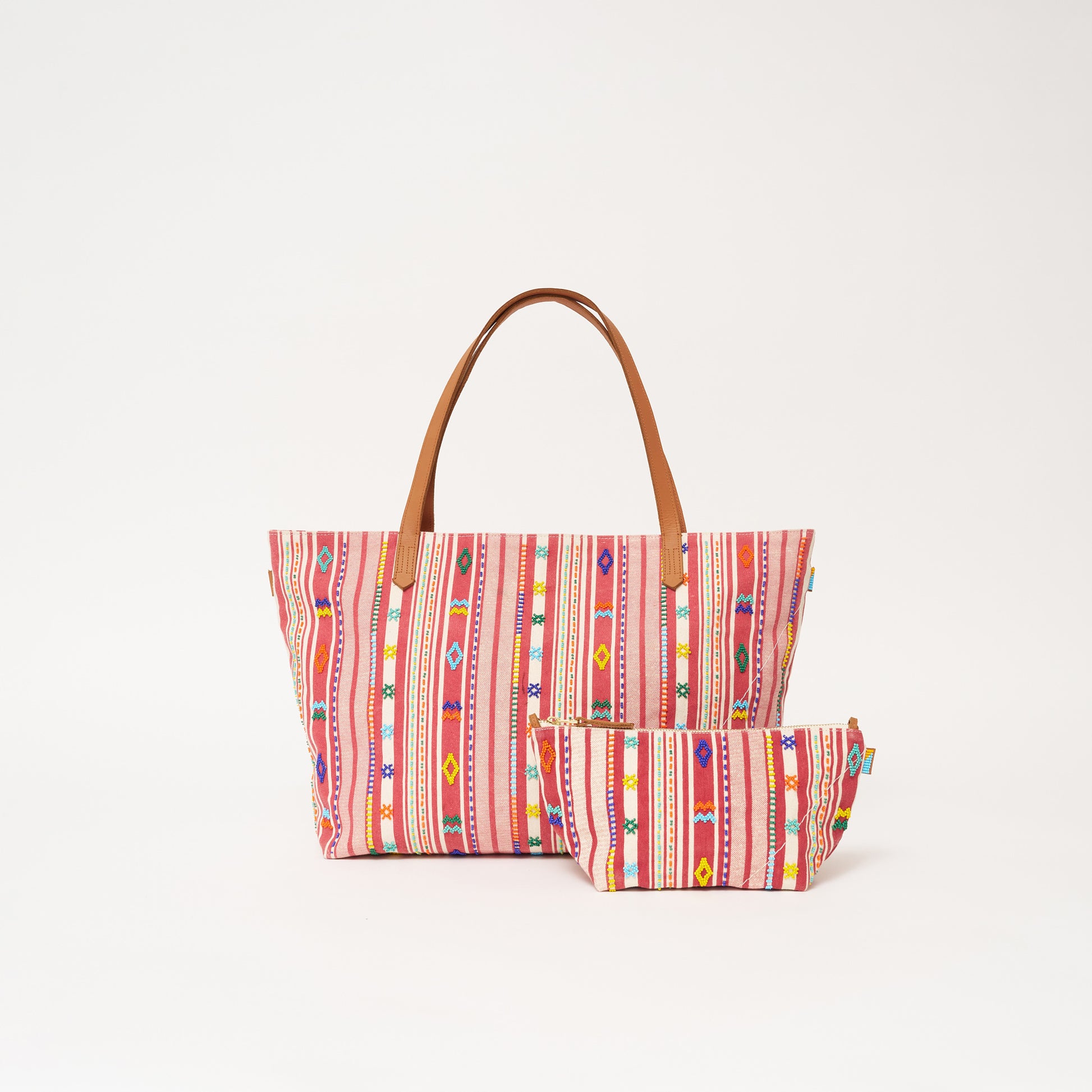 This bundle features the Samburu Tote and Large Convertible Pouch in our Fez Beaded Stripe.