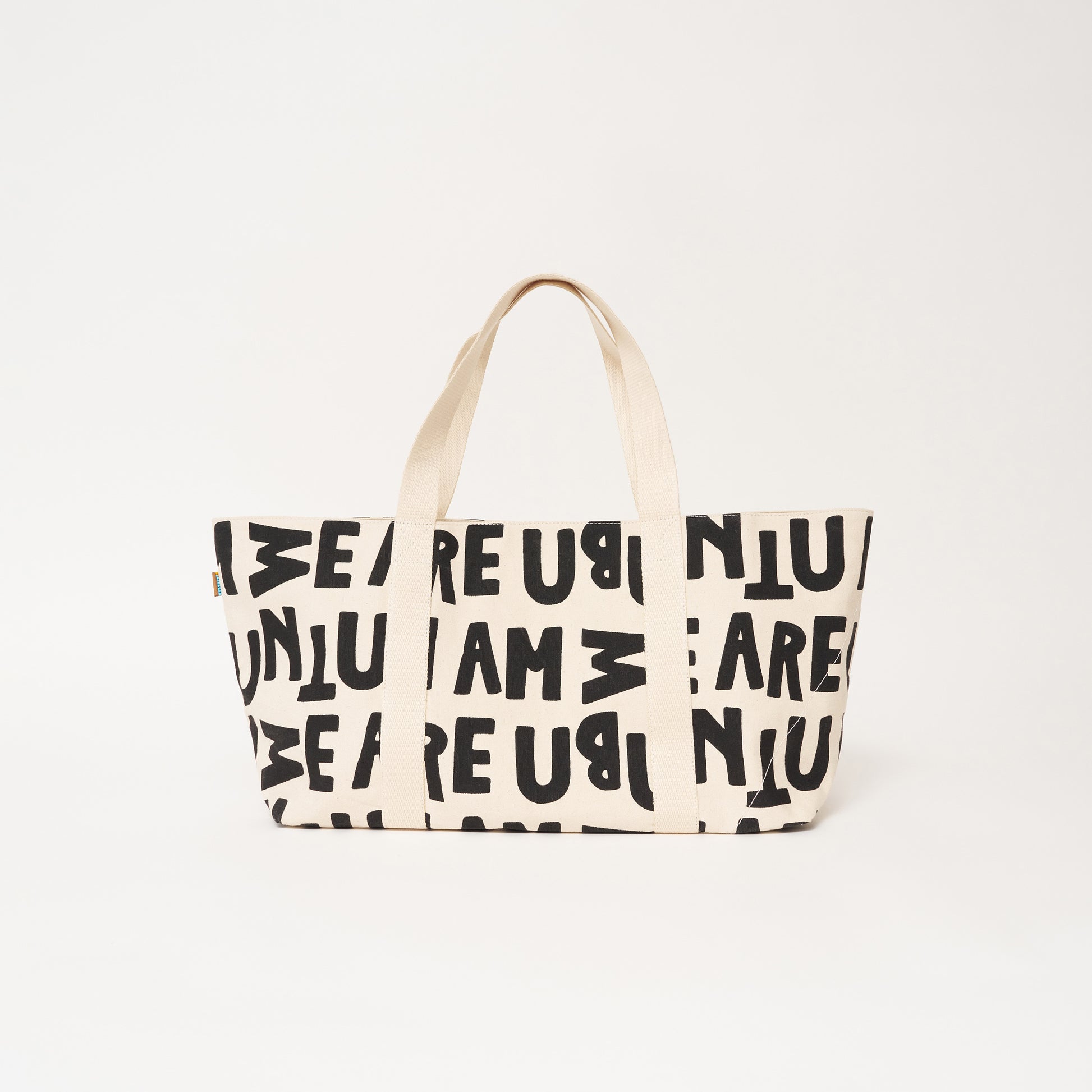 Introducing our new UBUNTU I AM BECAUSE WE ARE canvas tote — a new mixed print crafted by our makers. Made from 100% cotton canvas, this versatile tote is designed for daily carry, from workdays to weekends away. It features cotton webbing handles and is an expandable silhouette. Functional, durable, and effortlessly chic.