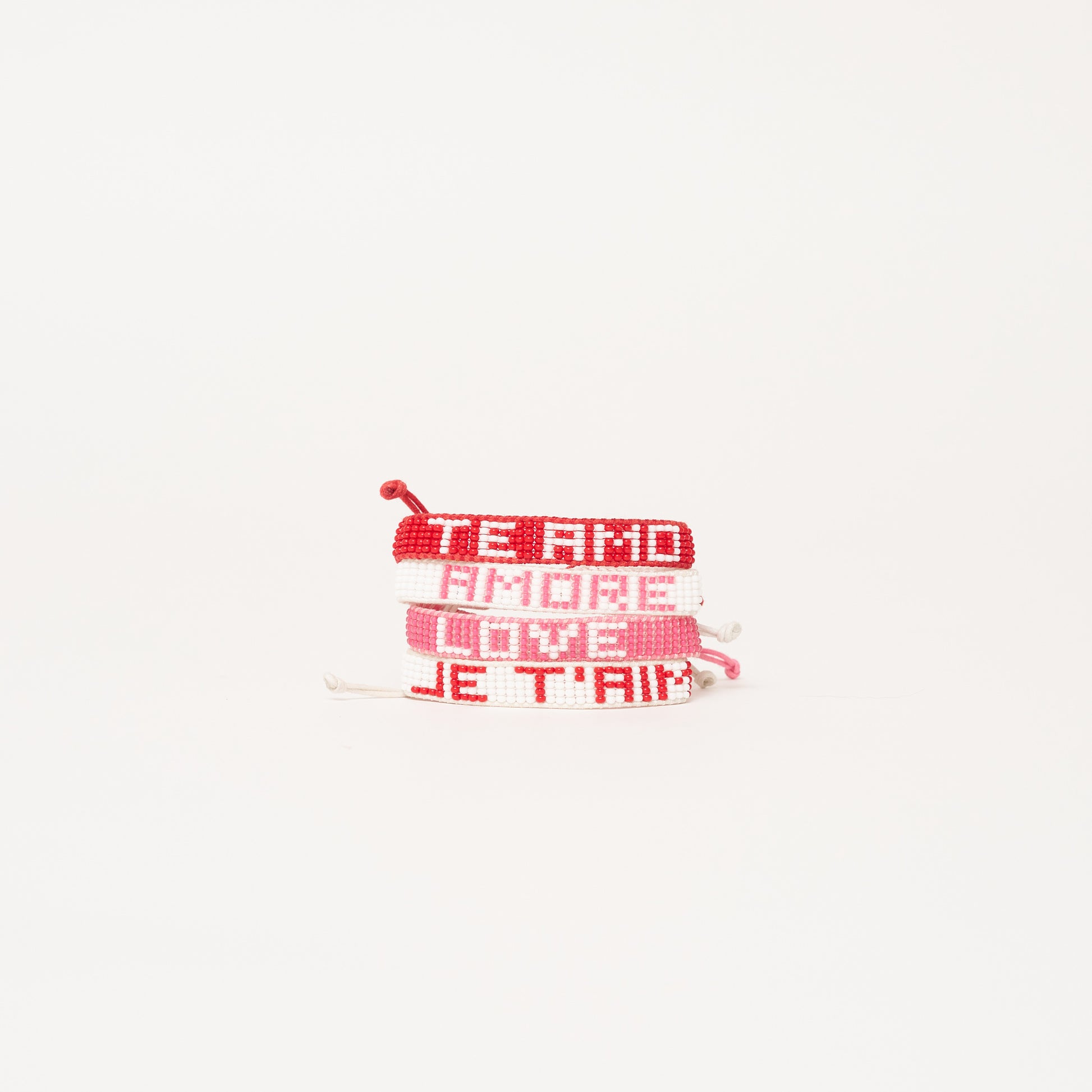 Our international LOVE pack features our woven Love bracelets in multiple languages. French, Italian, Spanish, English – LOVE is universal.