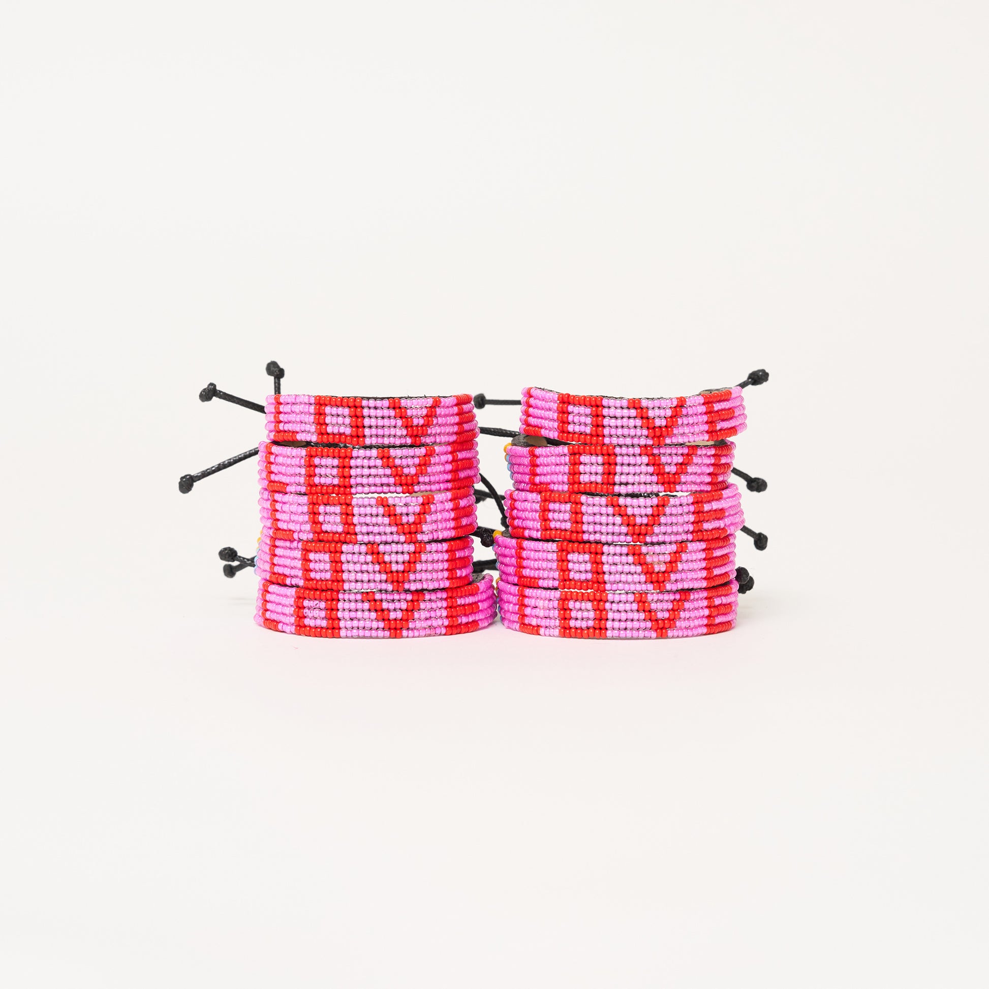 Give a little LOVE. A 10-pack bundle of our Bubblegum and Cherry LOVE Bracelet for easy gifting and spreading LOVE.