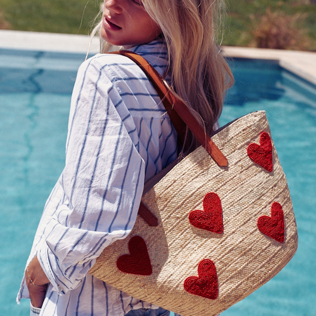 Palma Tote with Beaded Red Hearts
