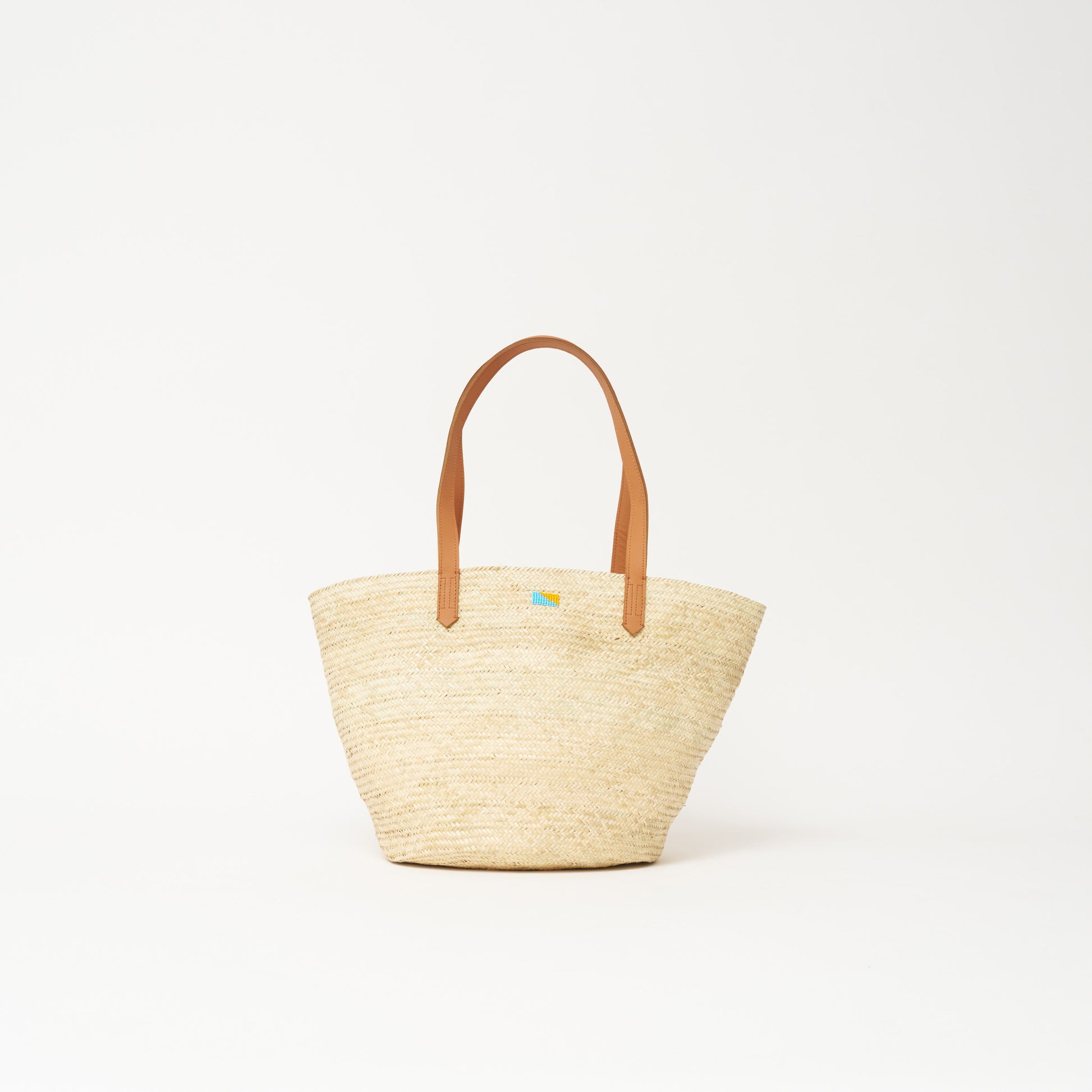 Finished with smooth leather shoulder straps, it’s the perfect carryall for beach days, farmers markets, or everyday errands—with a story woven into every thread.