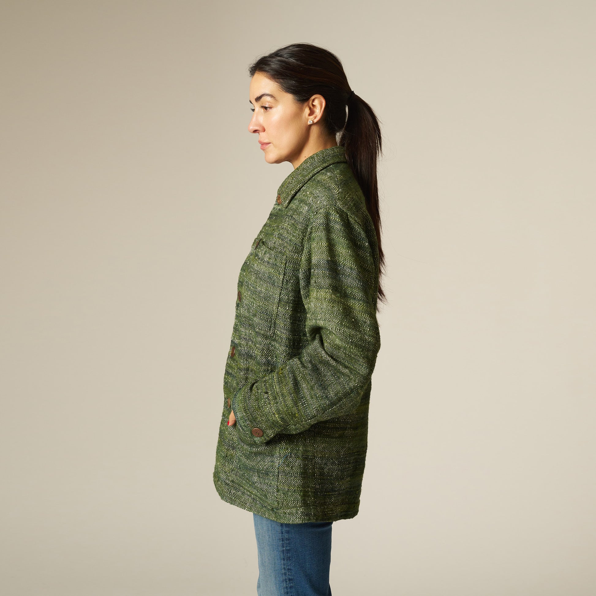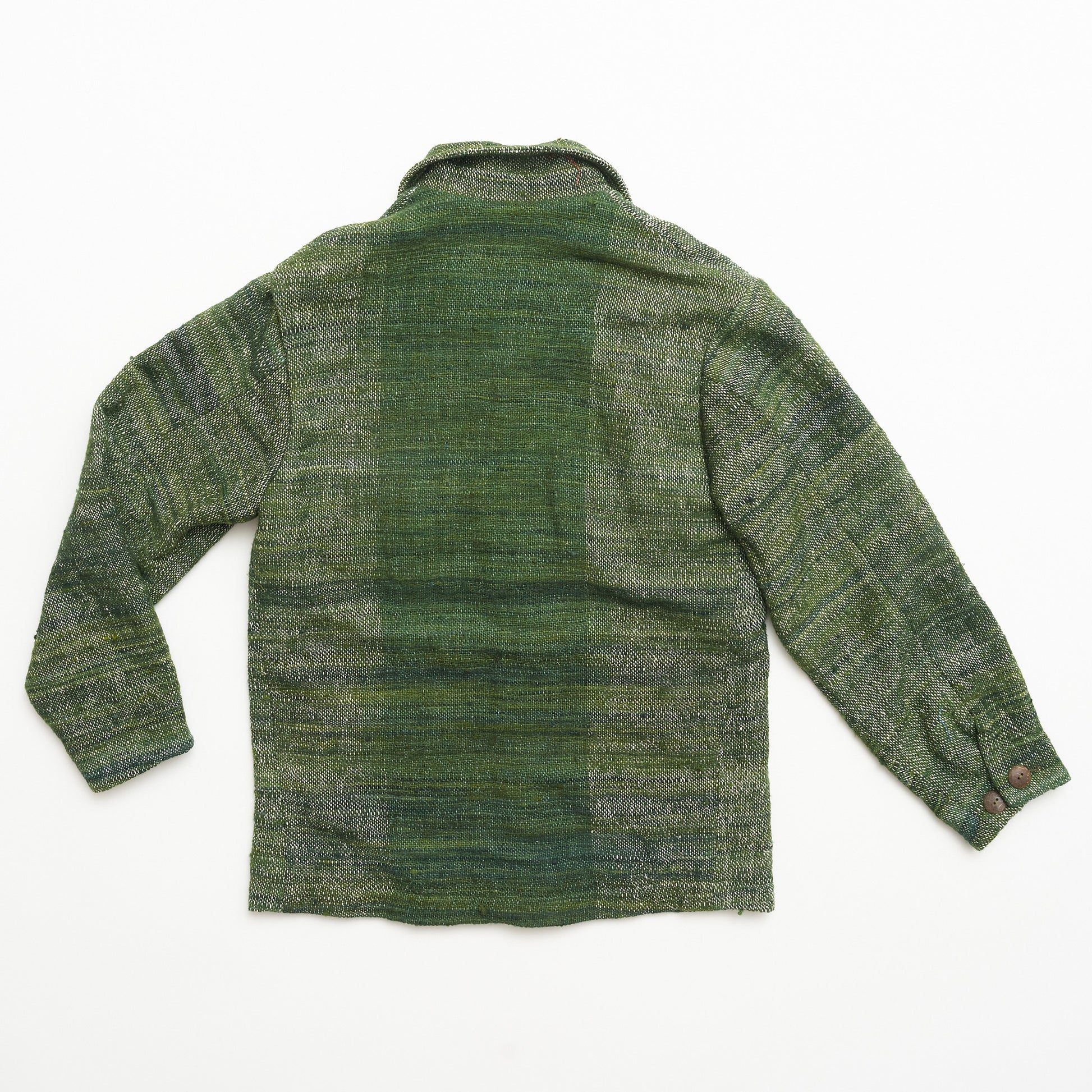 Crafted in partnership with KikoRomeo, a mother and daughter team, this small-batch unisex workman jacket is a celebration of artistry, sustainability, and community. Each piece is handwoven in Kenya from wool and cotton, plant-dyed in outdoor batches, and finished with natural coconut-shell buttons and an ethically sourced horn logo — making it fully biodegradable from stitch to trim.