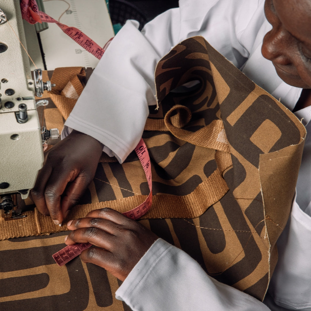 Our XLarge Convertible Pouch in our iconic Kuba print, now available in a limited-edition coffee colorway with a red beaded heart. Crafted from durable cotton canvas, it’s designed for everyday use or effortless travel.